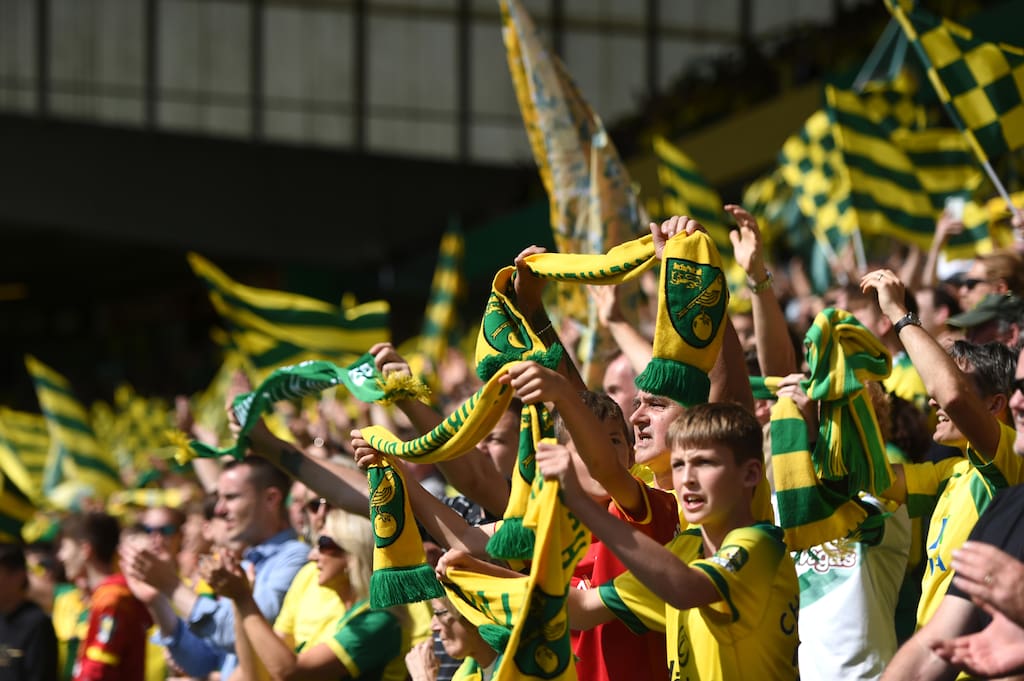 Norwich City fans in the stands during the Premier League match at Carrow Road, Norwich (Alamy Stock Photo)