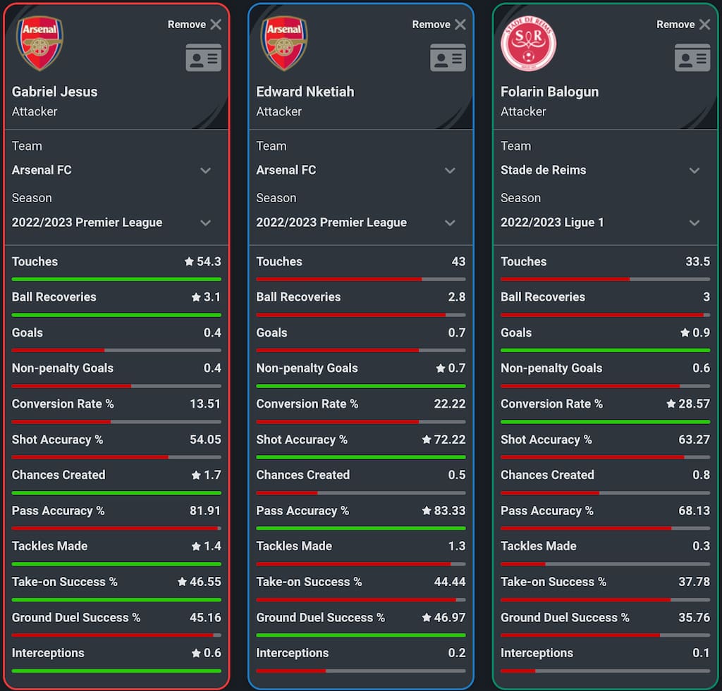 Moreover, questions on whether or not Balogun would offer the same – or more – in Arteta’s system to force his way ahead of Nketiah, or Jesus (or both) certainly remain unanswered at the time, but a comparison of both via Squawka’s data matrix shows, at least on the surface, that the current senior duo is ahead of the 21-year-old in terms of overall contribution in all phases of play.